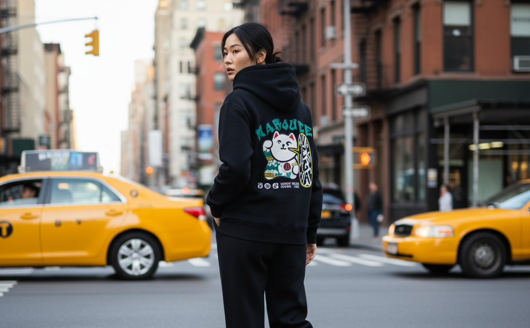 WW045-B 女裝棉質黑色拉鏈連帽外套