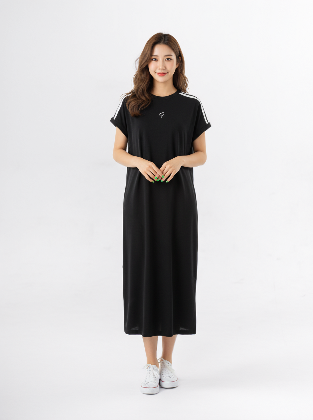 這款女裝長裙採用優質全棉面料,柔軟透氣,穿著舒適。寬鬆直身剪裁展現簡約氣質,適合各種身型。前胸點綴個性心形綉花設計,增添細緻風味;肩膊插色條子細節為整體造型增加視覺層次感。無論日常穿搭或休閒場合,都能輕鬆駕馭,是衣櫃必備的百搭長裙。