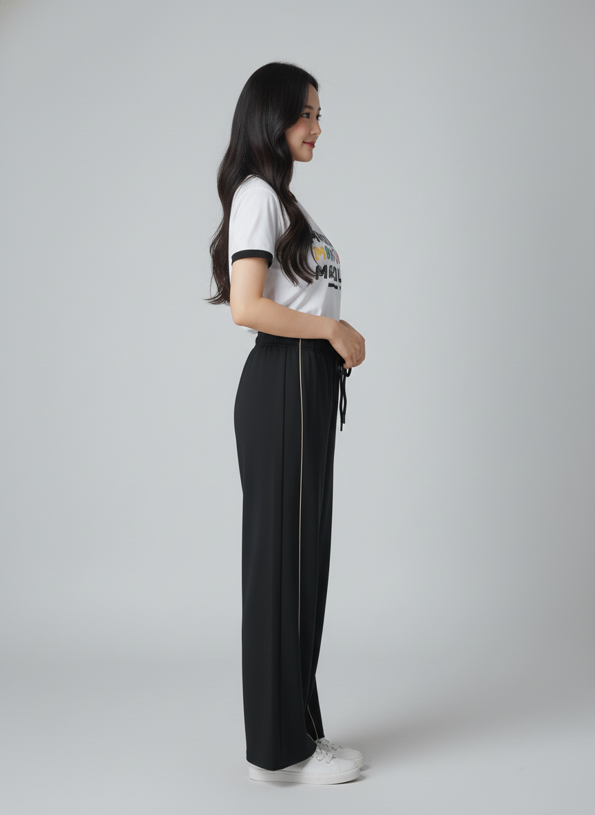 女裝針織全棉長褲採用優質全棉針織面料,柔軟透氣,穿著舒適。側骨插袋設計實用便利,前中彎形暗金邊飾增添精緻感,巧妙修飾身形線條,展現纖長腿部比例。簡約剪裁搭配細節設計,輕鬆打造優雅氣質,是日常穿搭的百搭佳選。