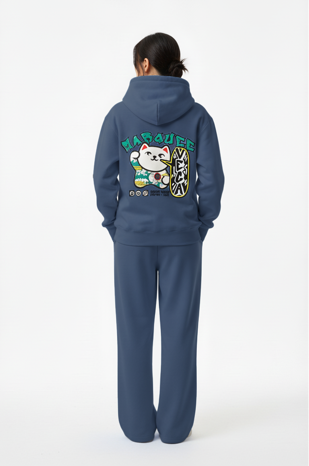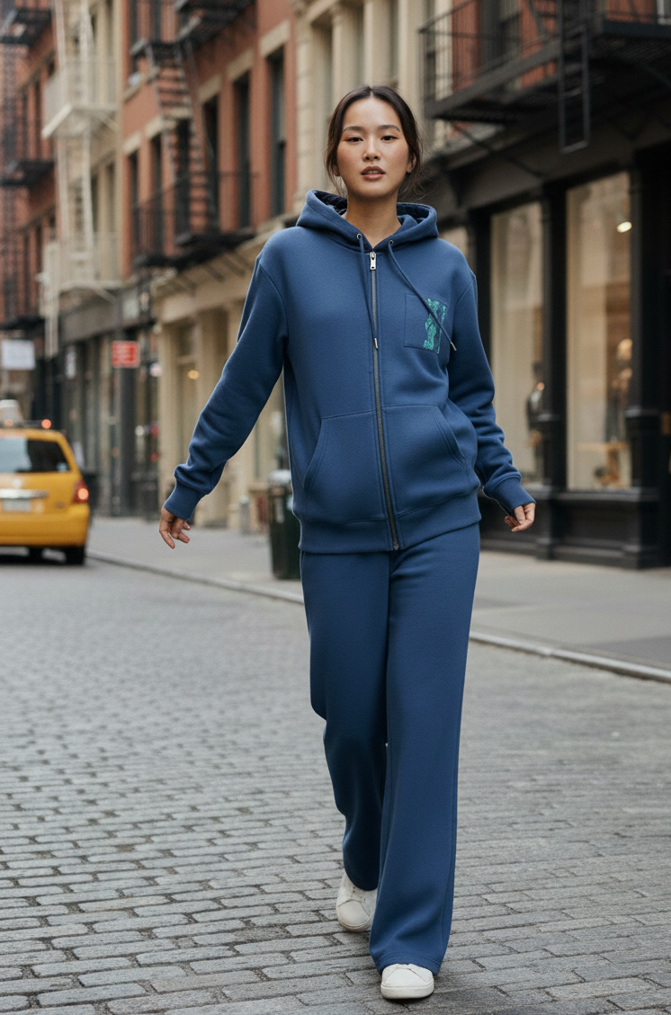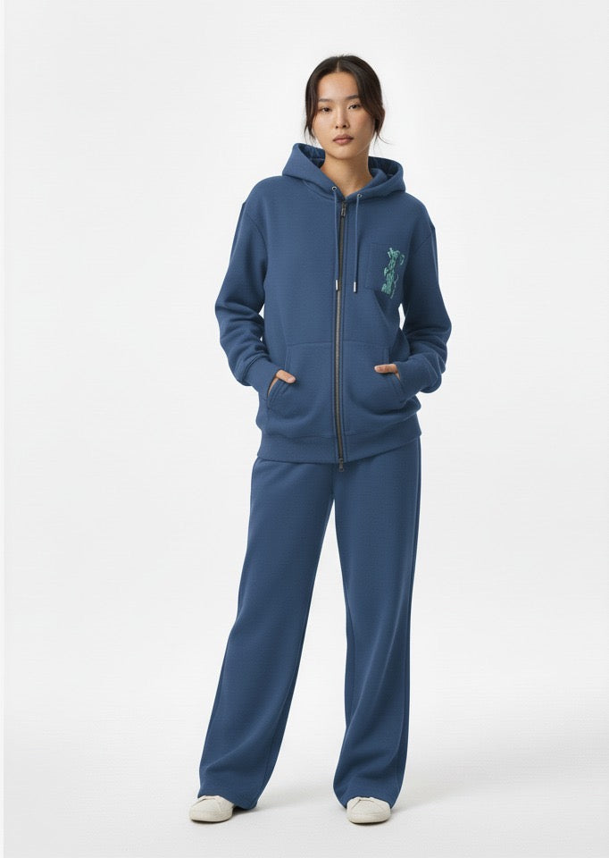 WW045-N 女裝棉質藍色拉鏈連帽外套